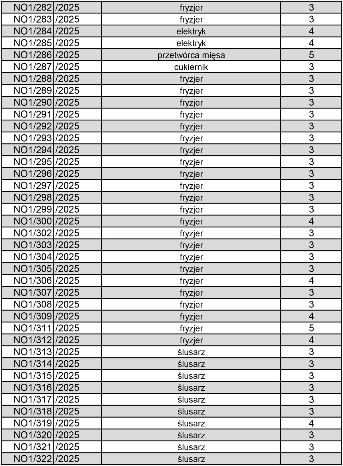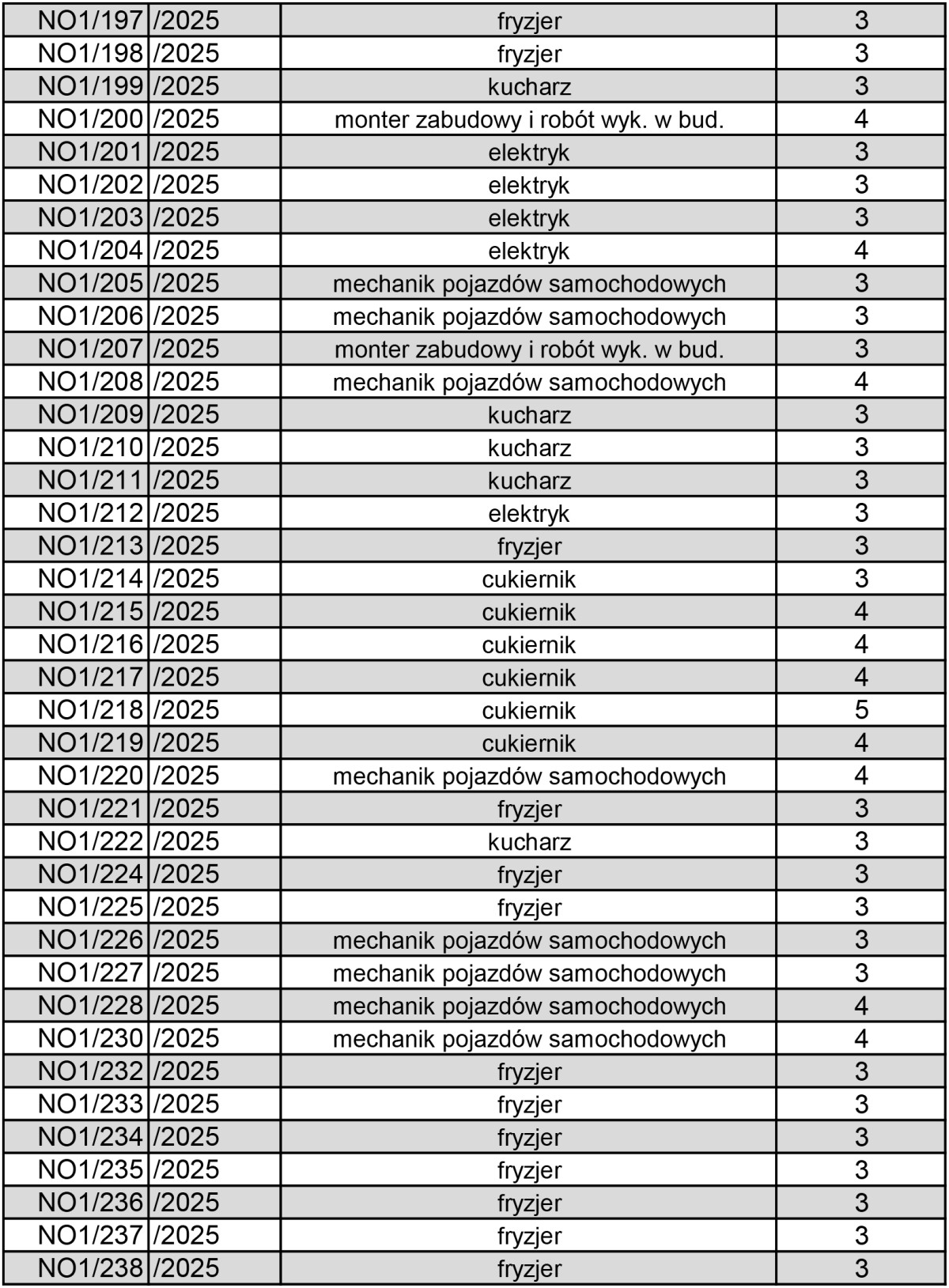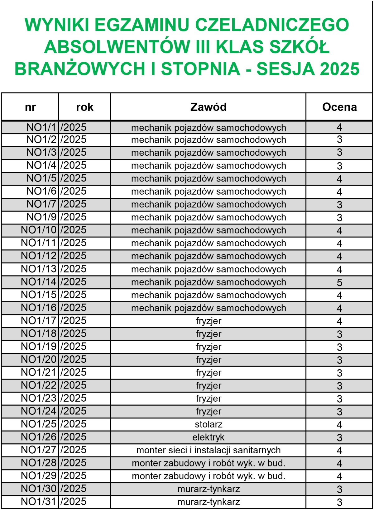 WYNIKI EGZAMINU CZELADNICZEGO DLA ABSOLWENTÓW III KLAS SZKÓŁ BRANŻOWYCH I STOPNIA - SESJA 2025